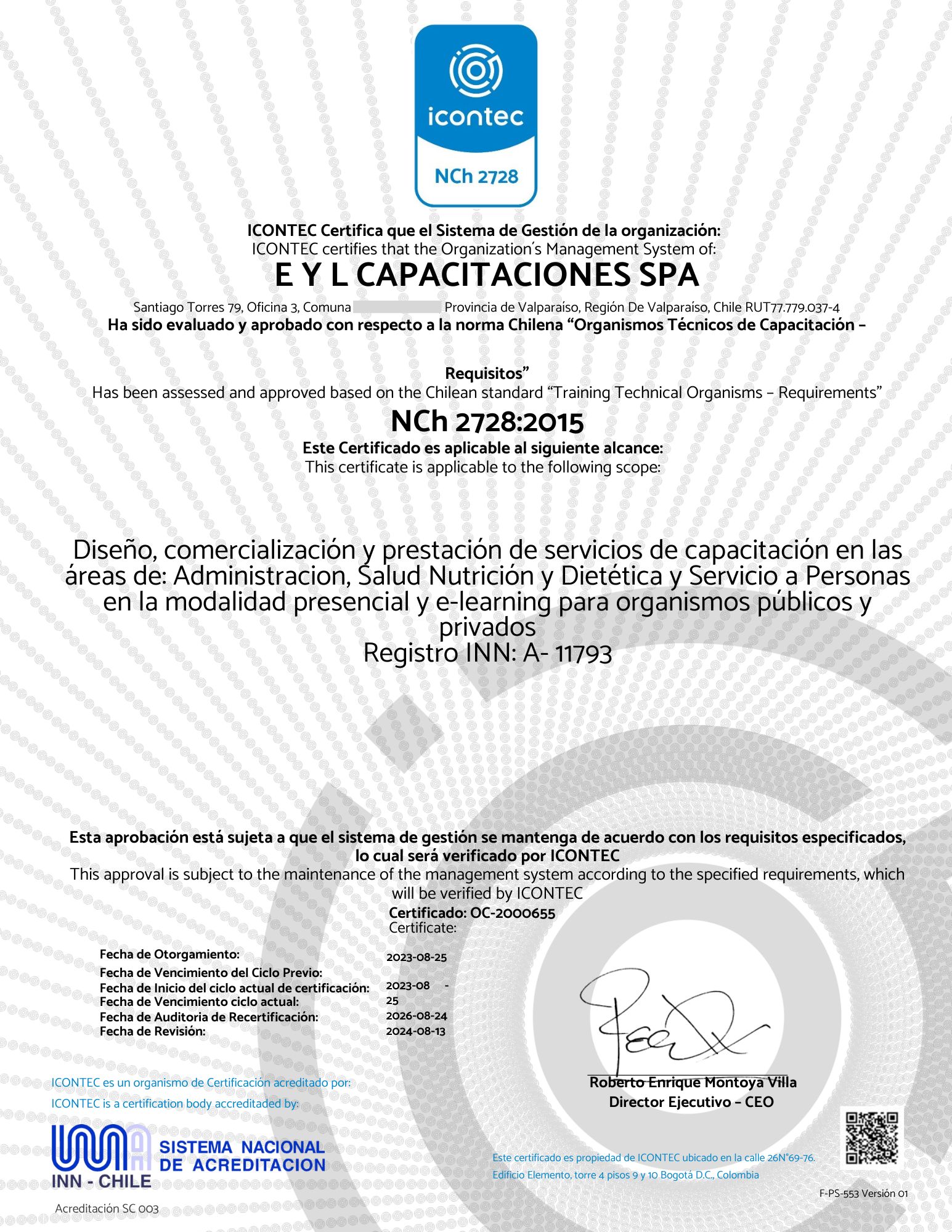 Estamos ACREDITADOS bajo la norma NCh2728 por el Instituto Nacional de Normalización (INN) y por SENCE!